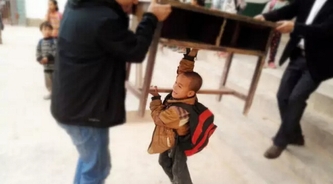 有幾個小男孩,像小大人一樣,執(zhí)意要和我們一起搬運。哪怕是桌子蓋過了他們頭頂,哪怕是一邊抬著桌子一邊喘著大氣,他們依然不肯休息。我們知道,他們只是希望盡自己的的一份力,來回報我們的這份溫暖。/010.jpg)