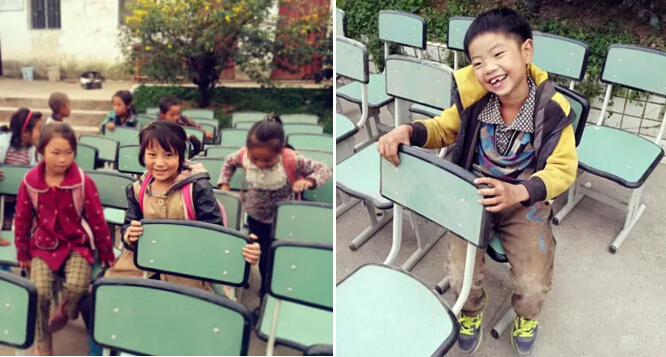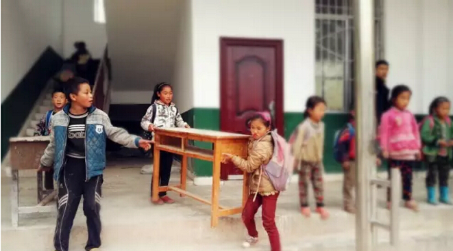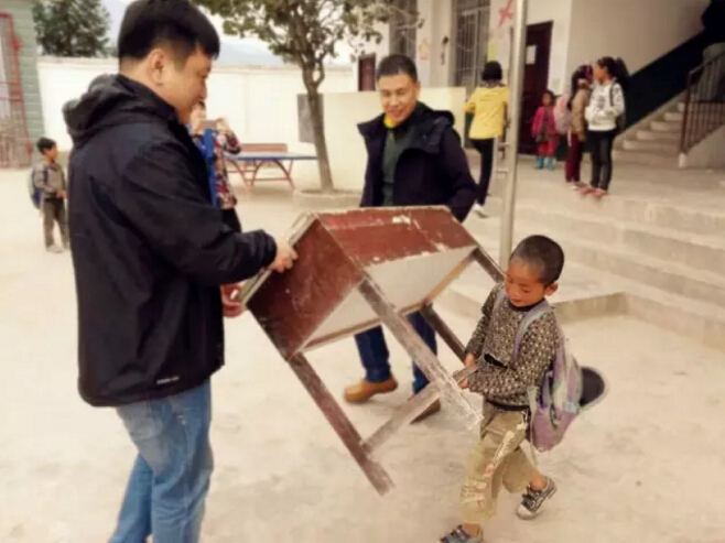 校長剛開始安排搬出舊課桌,挖哈小學的孩子們就立即高興地用小手自己搬扛起來。令我們這一群成年人倒是擔心不已,趕緊搶著加快速度搬抬課桌。